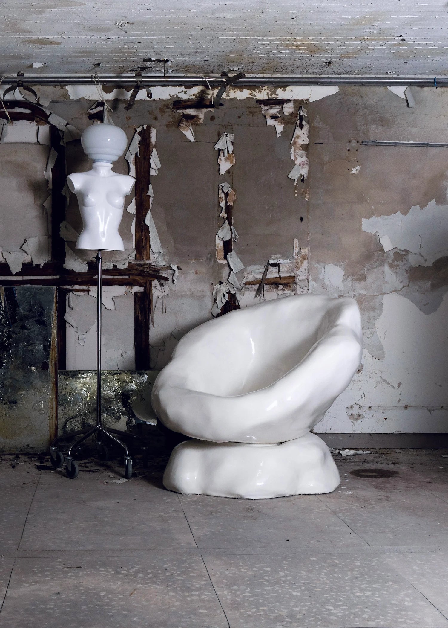 Materials move between roles. Wool beside concrete. Textile beside ceramic. Upcycled materials reshaped into sculptural silhouettes. Furniture moves between function and sculpture. Garments carry the memory of craft without the weight of folklore. Everything is allowed to shift, collide and transform.